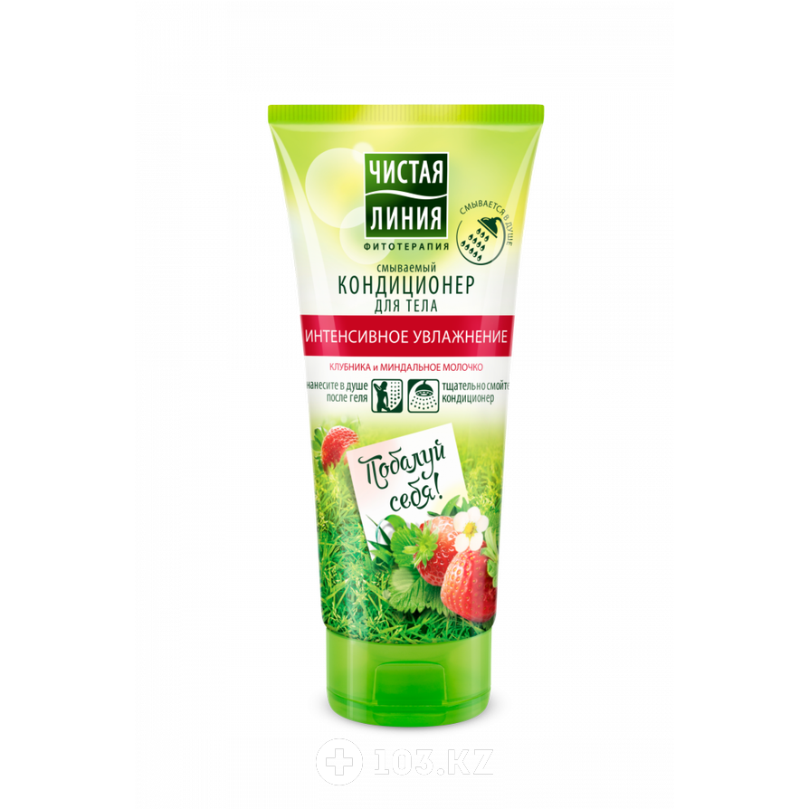 Смываемый кондиционер для тела Чистая Линия - это настоящий клубничный десерт для кожи. Его удобно использовать в душе, легко смывать. Мгновенное действие, интенсивное увлажнение. Наносить всего на несколько секунд после использования геля для душа и смыть водой.