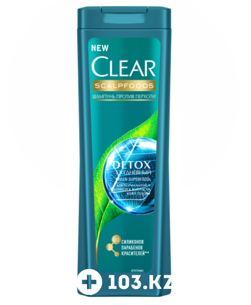 В состав ежедневного суперфуд комплекса от Clear входят зеленые superfood компоненты: зеленый чай, киви и огурец, обладающие глубоким детокс-эффектом, а новая формула не содержит силиконов, парабенов и красителей – детокс для волос от Clear.