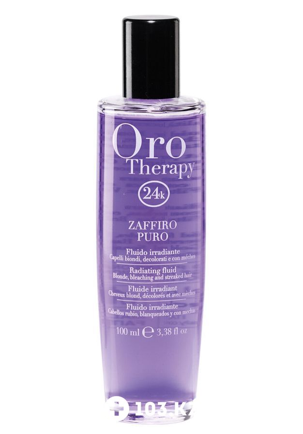 Флюид Fanola Oro Therapy 24k Zaffiro Puro для осветленных и светлых волос с сапфирами, микрочастицами золота, маслом земляного миндаля и маслом арганы. Уникальный комплекс с сапфирами восстанавливает структуру поврежденных волос и придает ему роскошный блеск. Обладает антиоксидантными свойствами и UV-фильтром, защищает волосы от негативного воздействия окружающей среды и высоких температур при термообработке.