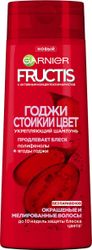 Формула FRUCTIS не содержит парабенов и обогащена активным концентратом фруктов. Благодаря комбинации фруктов, витаминов В3, В6 и протеина лимона ваши волосы более сильные и блестящие. Формула FRUCTIS Годжи Стойкий Цвет, обогащенная ягодами Годжи и полифенолами, питает и придает блеск окрашенным волосам. Результат: до 10 недель защиты блеска окрашенных волос. Формулы FRUCTIS эффективно и бережно ухаживают за вашими волосами. Подходит для ежедневного применения