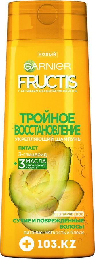 Указанная цена на Шампунь Fructis Тройное Восстановление укрепляющий 250 мл Garnier в Алматы может отличаться от фактической. Если в описании или цене вы заметили неточность или ошибку, пожалуйста, сообщите нам на почту help@103.kz.