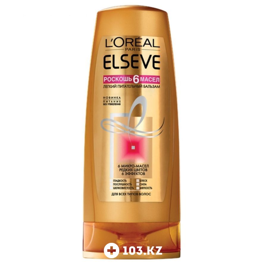 Бальзам «Эльсев Роскошь 6 масел» – отличный выбор для сухих и тонких волос. В его формуле 6 уникальных масел экзотических цветов, которые интенсивно питают и увлажняют волосы и кожу головы. Обеспечивает интенсивное питание от корней до самых кончиков.