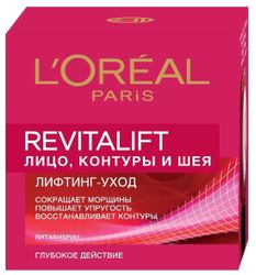 Лореаль Париж разработал антивозрастной крем для лица «Revitalift», действие которого направлено на борьбу с признаками старения. Крем повышает упругость и эластичность кожи, контуры лица становятся более четко очерченными, а морщины заметно сокращаются.