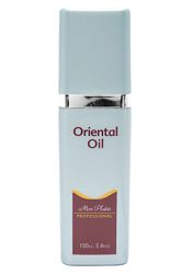 Восточное масло для волос содержит в себе комплекс масел: жожоба, дерева аргании, пророщенной пшеницы, витамин Е. Используется перед укладкой феном, так как работает и как термозащита, и как укладочное средство. Хорошо фиксирует волос при накрутке на бигуди. Масло облегчает расчесывание, увлажняет, придает волосам блеск.