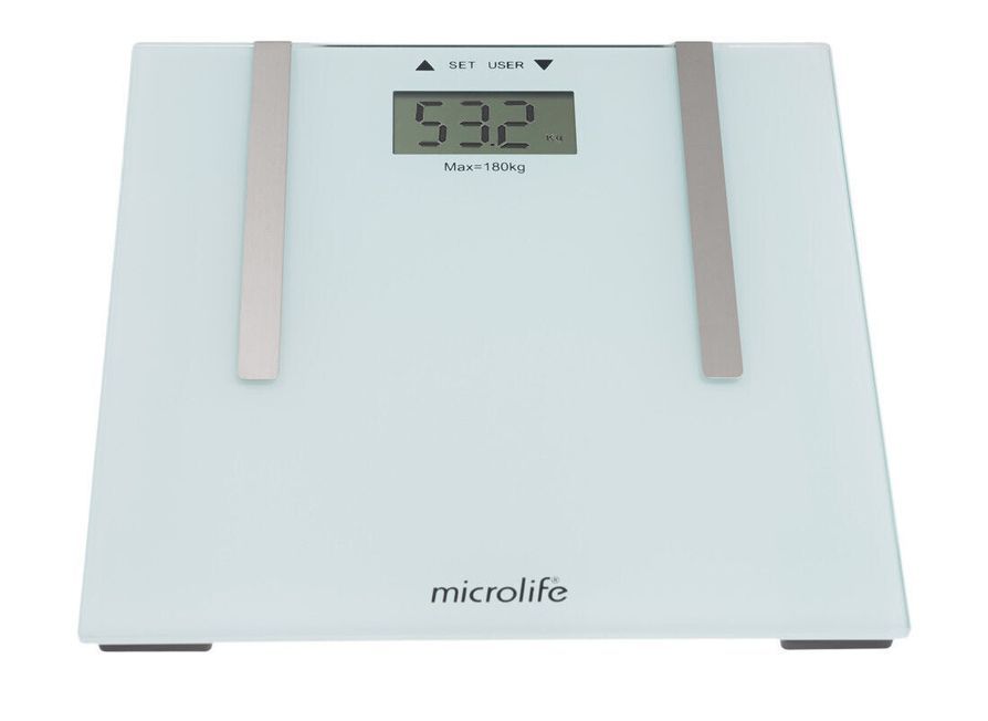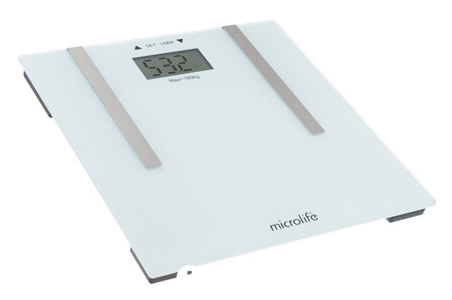 Производит расчет процентного содержания жира, костной массы, мышечной массы, индекст массы тела (ИМТ)* и воды в теле.