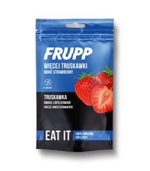 Идеально подходит для употребления сразу после вскрытия упаковки или в качестве добавки, обогащающей десерты, торты, йогурты и напитки. Для производства 100 г лиофилизированной клубники использовали 1 кг свежей клубники.