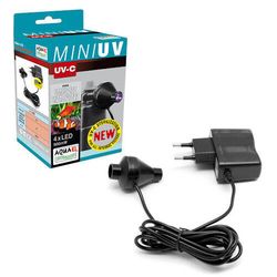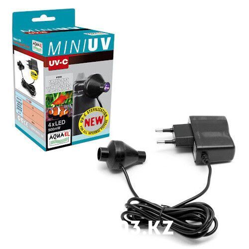 AQUAEL MINI UV является уникальным прибором. Он в форме короткой гильзы, накладываемой на выходное сопло фильтра. Внутри находятся четыре энергосберегающие светодиода, излучающие ультрафиолетовый свет, который эффективно стерилизует воду, вытекающую из фильтра.