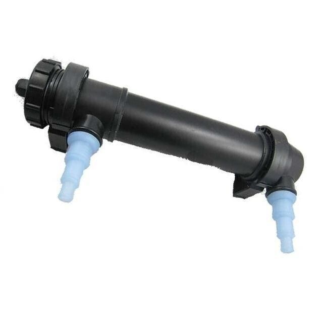 УВ стерилизатор. Через один из входов в UV-излучатель подается вода из аквариума и, протекая в нем, она попадает под действие излучения и оббезараживается. Через второй выход она выливается обратно в аквариум уже очищенная.