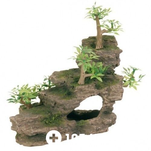Декорация для аквариума "TRIXIE" "Утёс с растениями", устойчива к соленой воде, не влияет на качество воды.