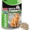 При производстве наполнителя используются только натуральные компоненты - бентонитовые глины. Намокая, гранулы превращаются в комки, которые легко убрать специальным совочком.