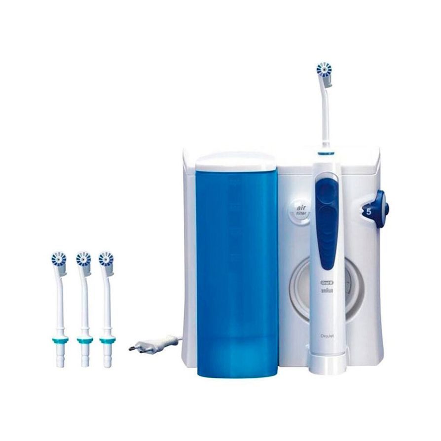 Ирригатор Oral-B Professional Care 8500 OxyJet MD20 с уникальной микропузырьковой технологией, славится немецким качеством и надежностью. OxyJet MD20 нагнетает воздух в водяной поток, образуя миллионы устойчивых микропузырьков, которые под напором атакуют бактериальный налет и вымывает остатки пищи между зубами и из под десны, одновременно массируя и укрепляя десны.