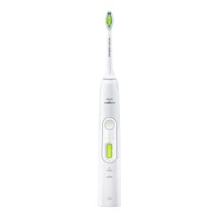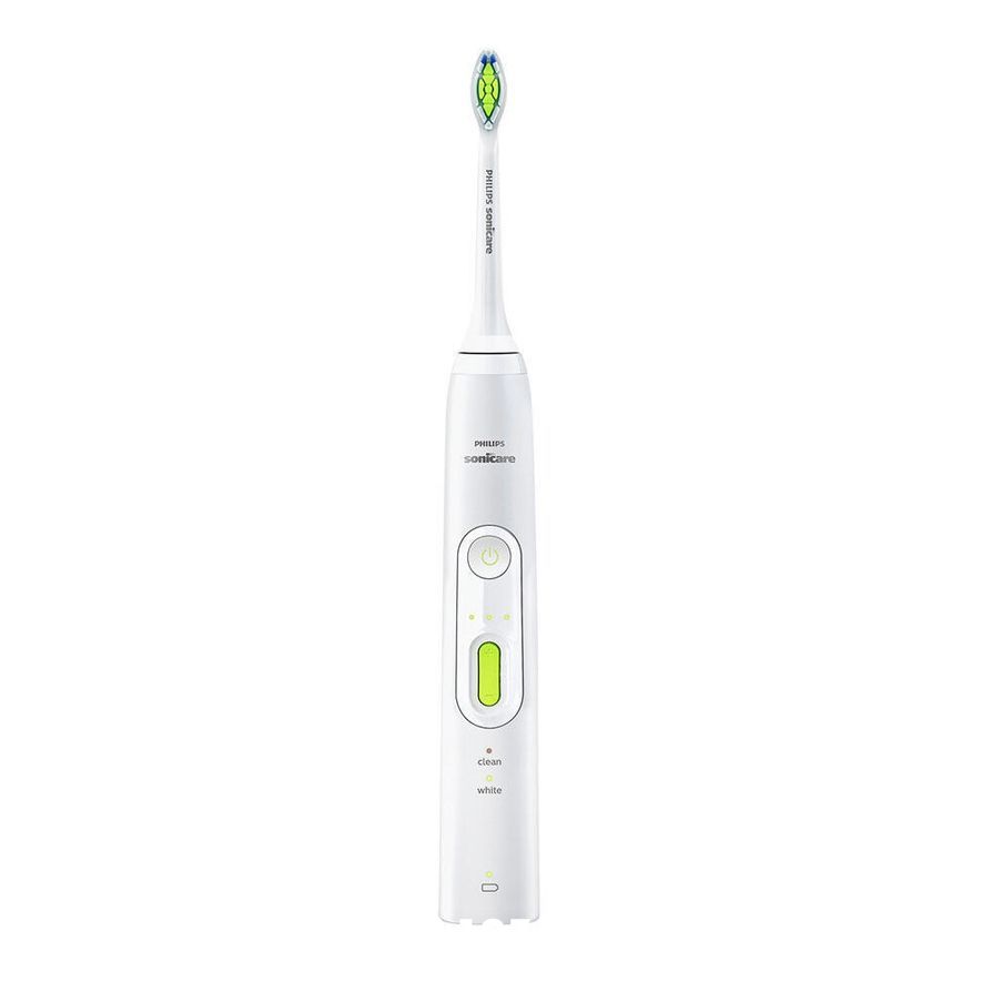 Водонепроницаемая аккумуляторная зубная щетка для ежедневного ухода за полостью рта с отбеливающим эффектом, удаляет до 100 % больше потемнений с поверхности эмали, чем обычная зубная щетка, эффект виден уже через 1 неделю. Улучшение состояние десен достигается всего за 2 недели благодаря уникальной звуковой технологии Sonicare, которая мягко и эффективно очищает межзубные промежутки и участки вдоль линии десен.