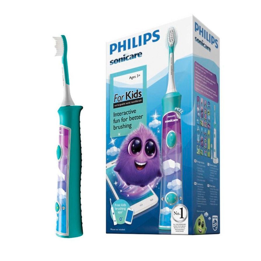 Электрическая звуковая зубная щетка Philips Sonicare For Kids HX6322/04 подходит для детей с 3 до 10 лет. Насадки имеют экстра мягкие щетинки и не травмируют детскую эмаль. Благодаря уникальной технологии чистки электрическая зубная щетка Philips Sonicare мягко и эффективно очищает межзубные промежутки и участки вдоль линии десен. Чистящие щетинки совершают более 500 движений в секунду обеспечивая эффективный уход за полостью рта.
